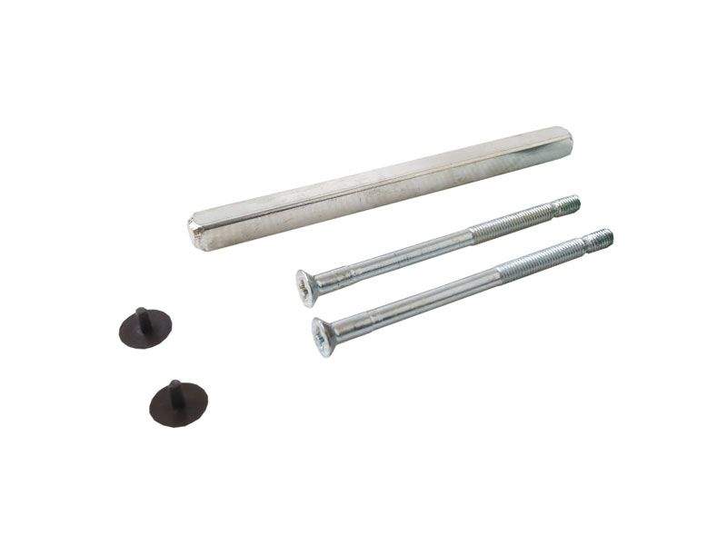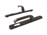 Данный дверной гарнитур выполнен из алюминия. Двусторонняя нажимная ручка зафиксирована на узкой сплошной накладке. Крепится с помощью двух стяжных винтов. В комплекте идут также декоративные накладки под винты.
